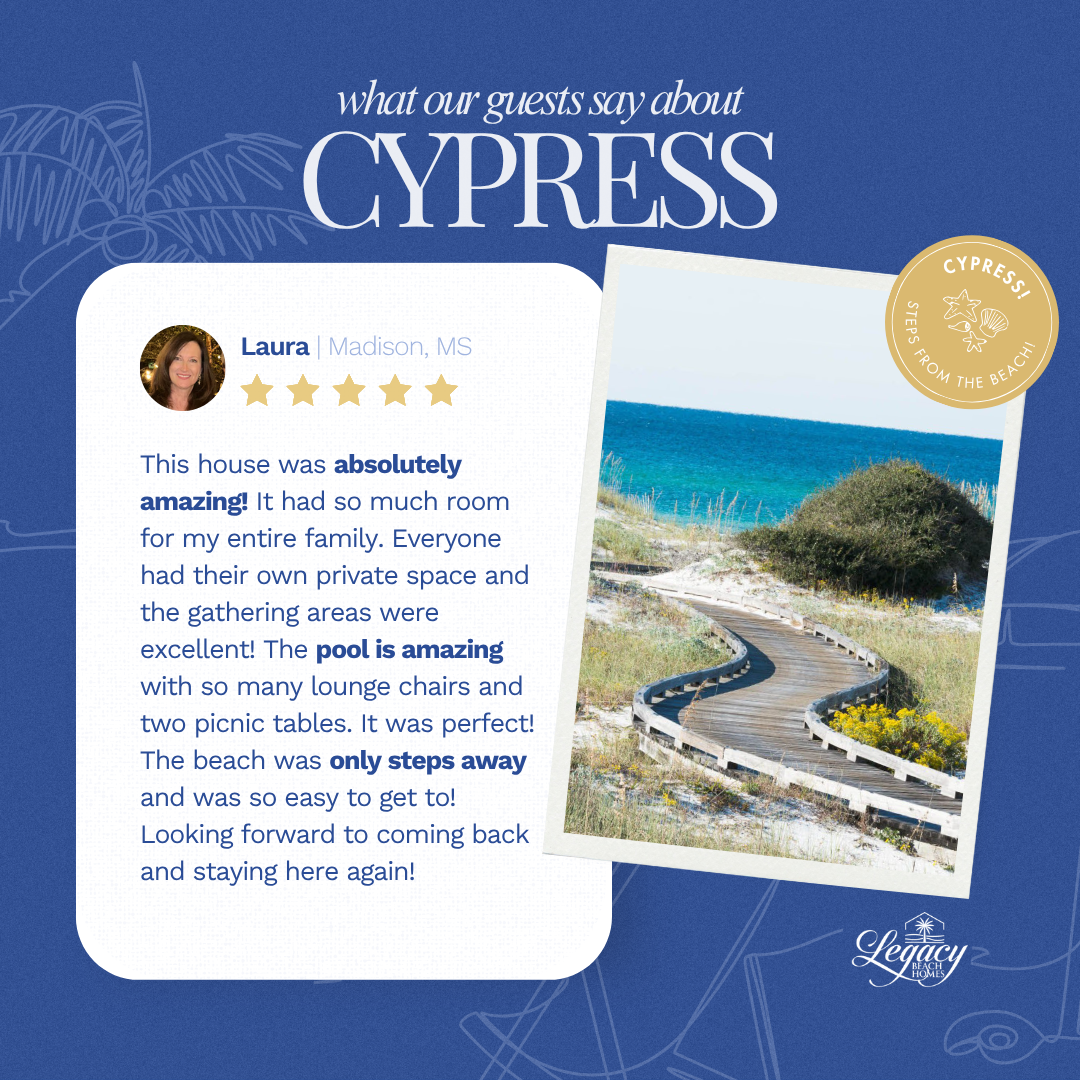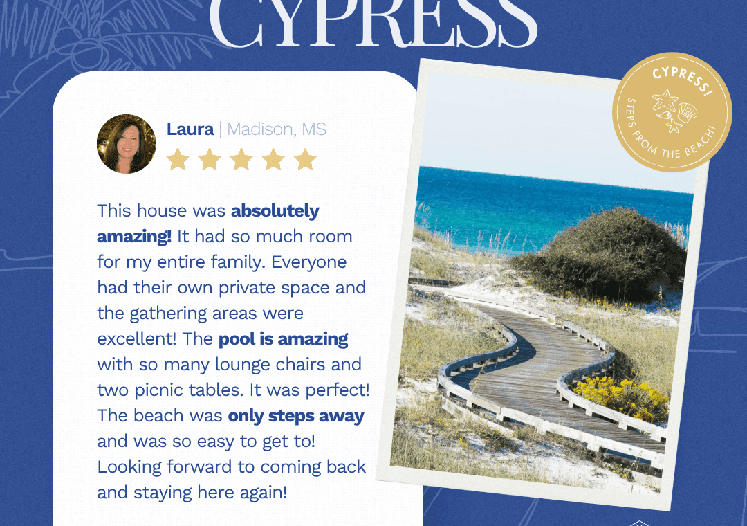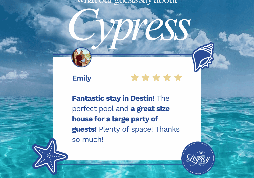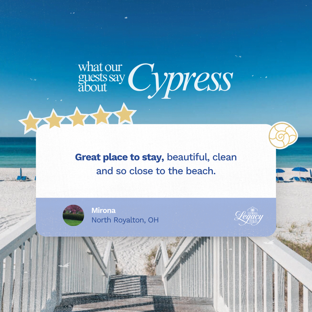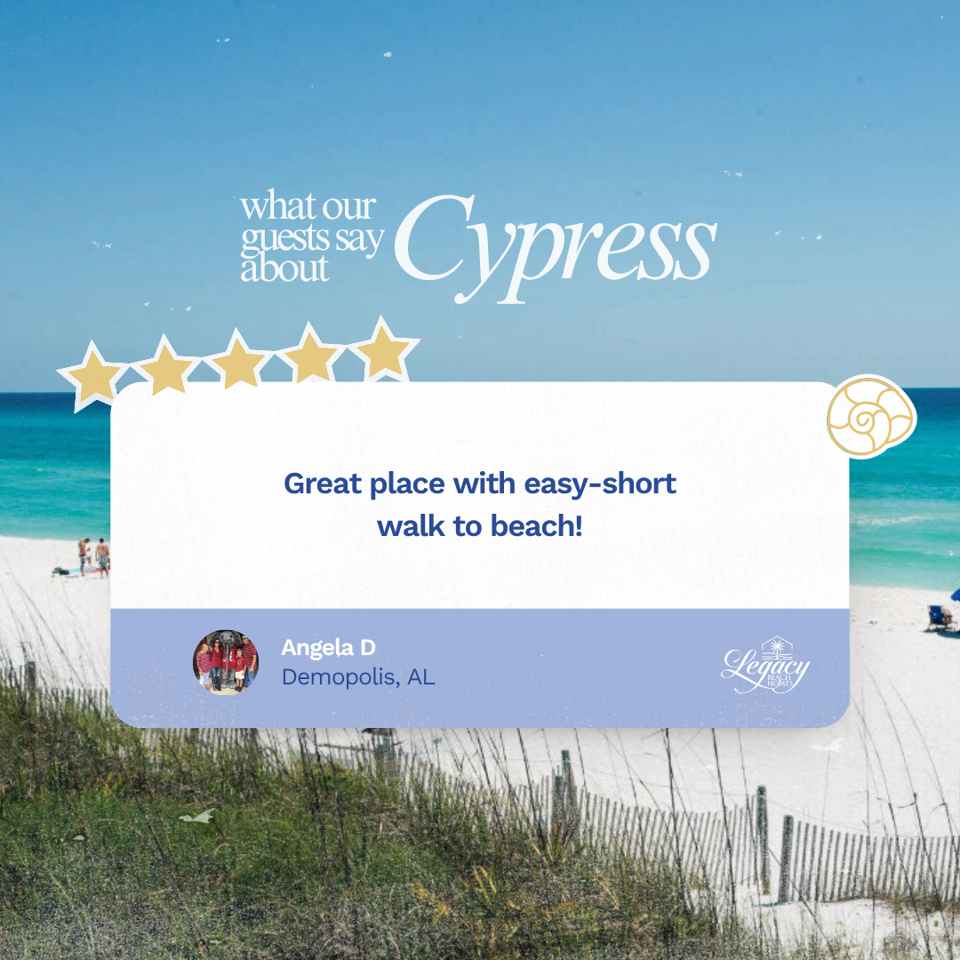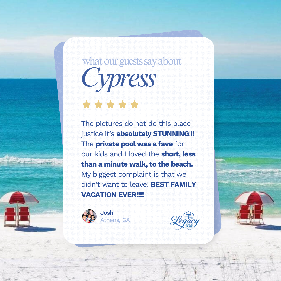 With spacious interiors, two living areas, and a prime location near Destin’s best restaurants and attractions, Cypress promises a memorable, stress-free vacation.