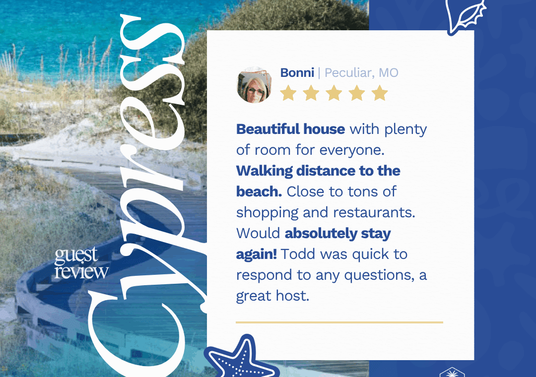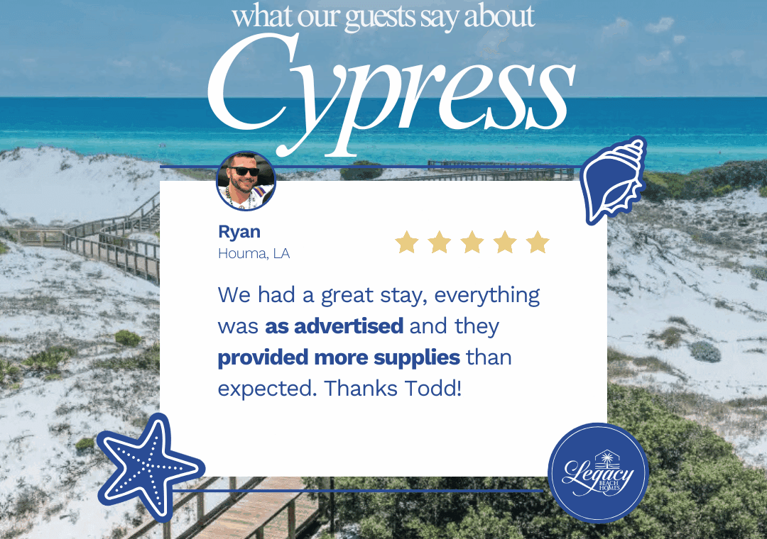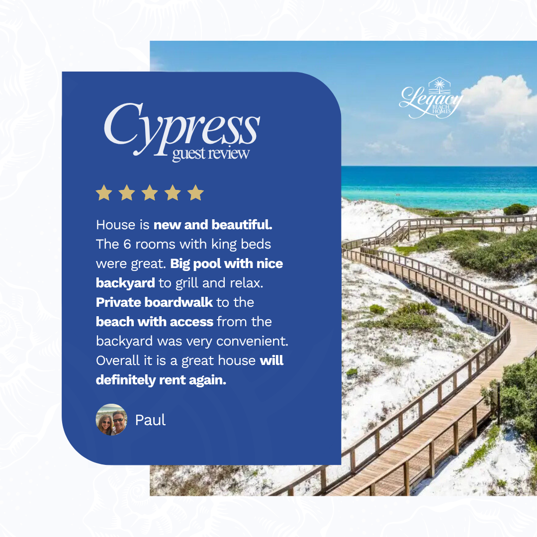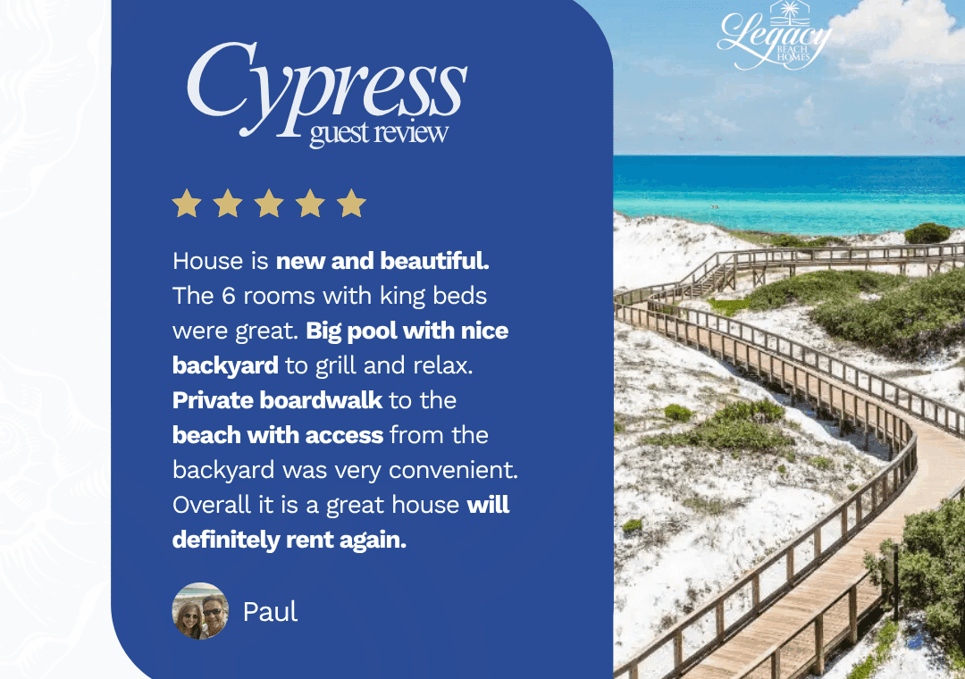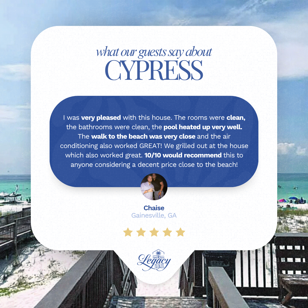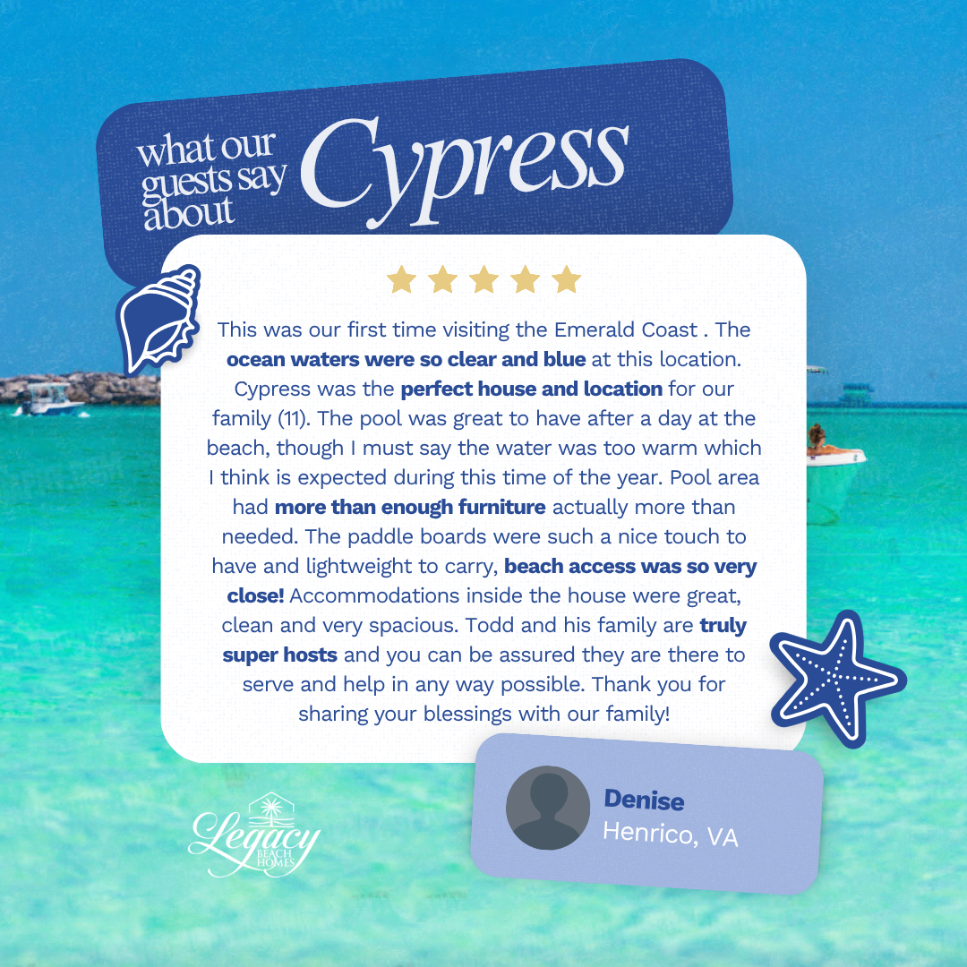 With spacious interiors, two living areas, and a prime location near Destin’s best restaurants and attractions, Cypress promises a memorable, stress-free vacation.