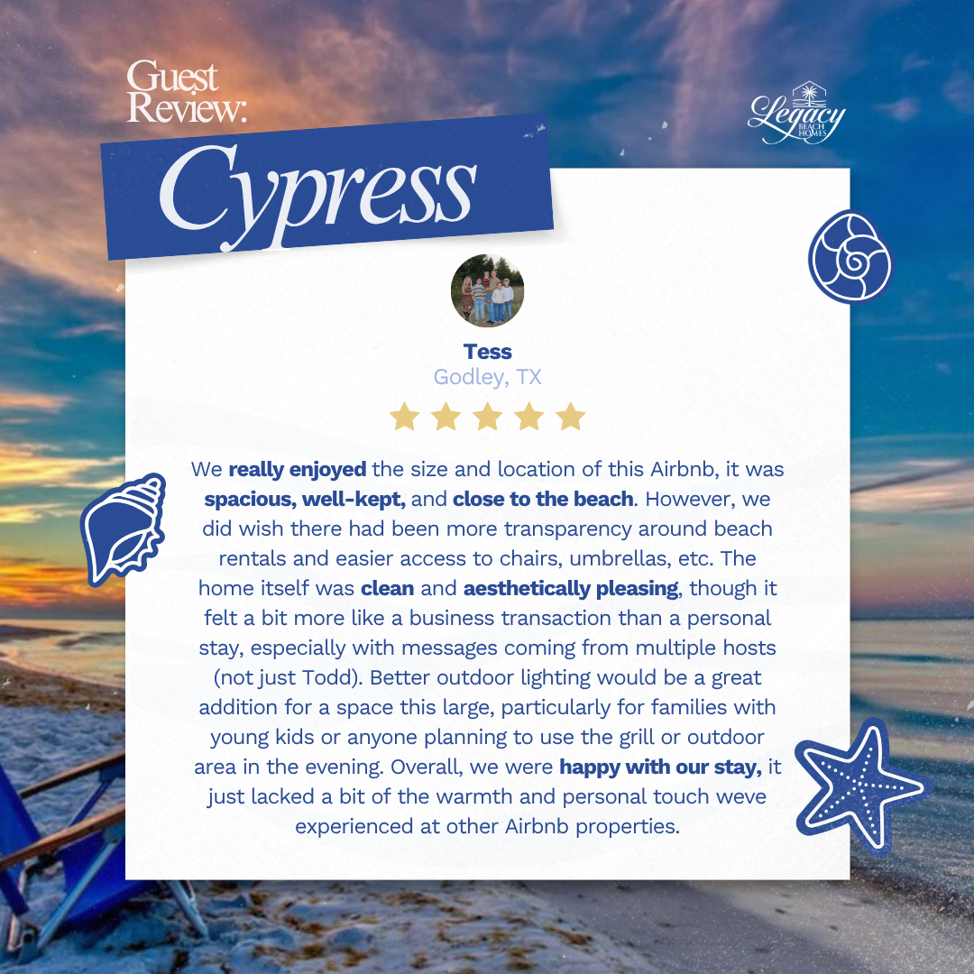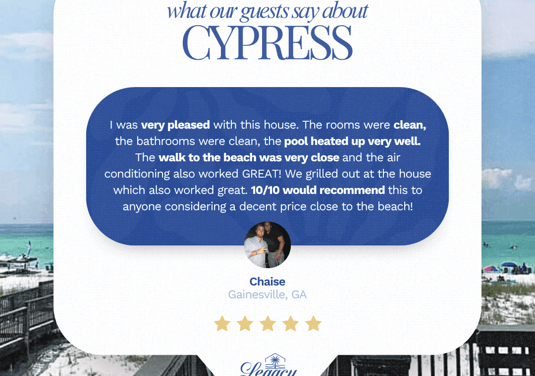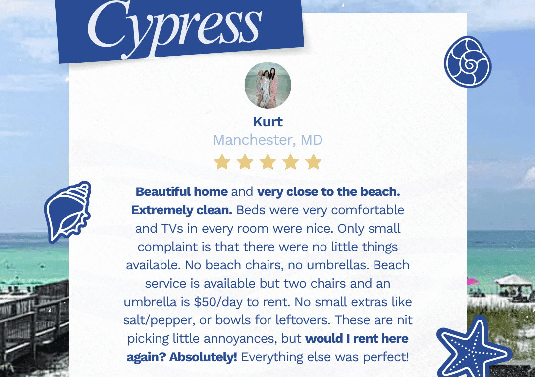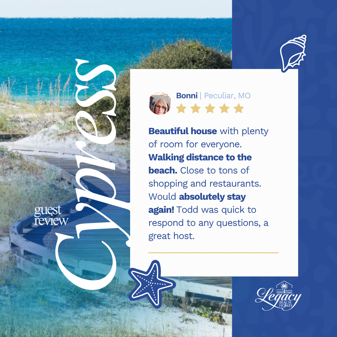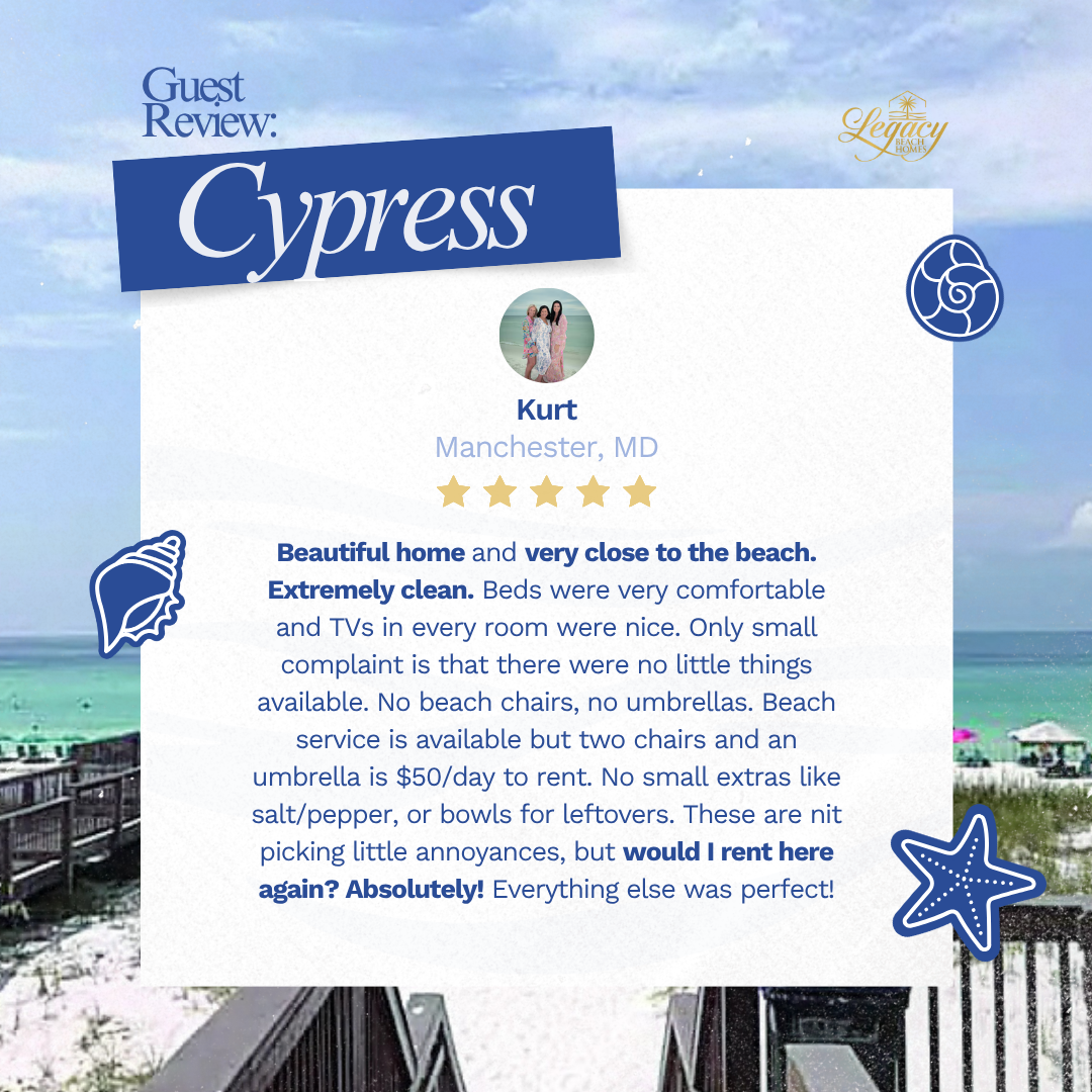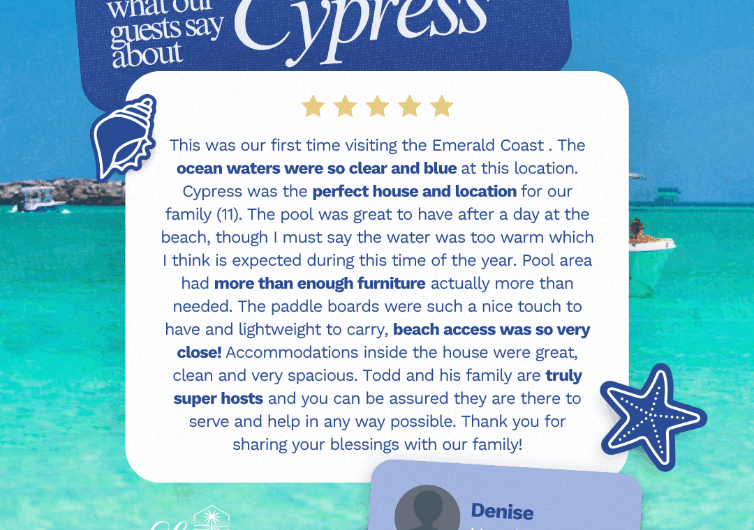 With spacious interiors, two living areas, and a prime location near Destin’s best restaurants and attractions, Cypress promises a memorable, stress-free vacation.