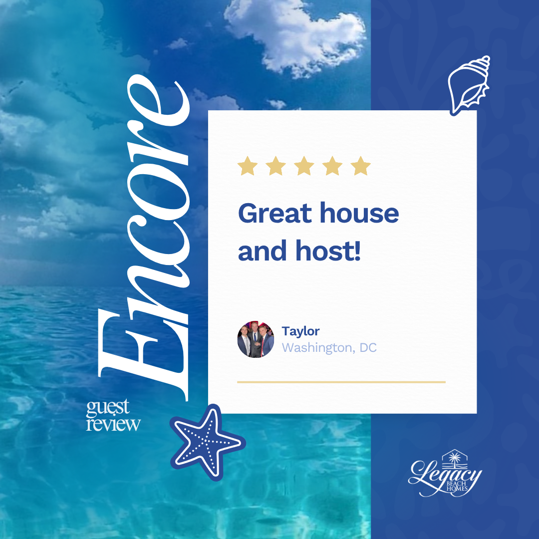 • WOWZATodd was a great host, very communicative, and detailed! The house is absolutely gorgeous (just like the pictures) and clean. We especially loved the pool, ping pong table, and grill - complimentary propane as well. Even the neighbors were very kind and friendly! The house is in a gorgeous area within minutes of 30A Shopping and great restaurants. We loved the Old Florida Fish House (reservation only) and Bayou Bills. 5/5