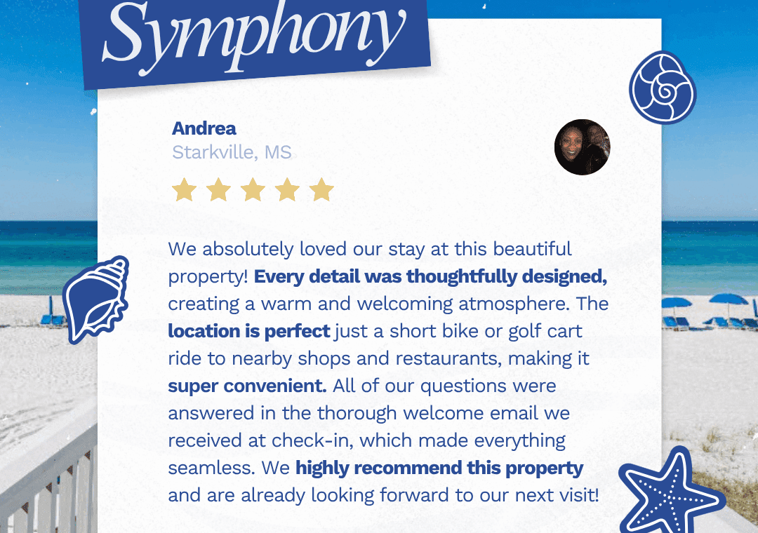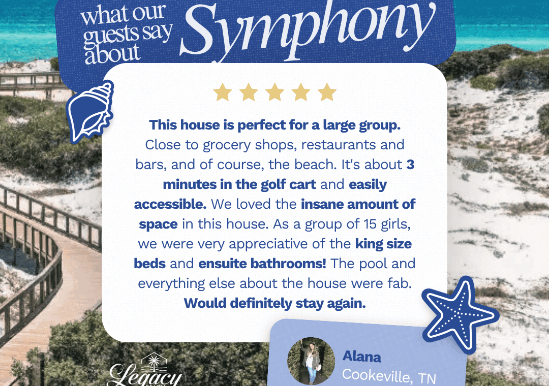 Welcome to Symphony! A newly built, wonderfully orchestrated vacation rental located less than half a mile from 30A’s beautiful sugar sand beaches!
